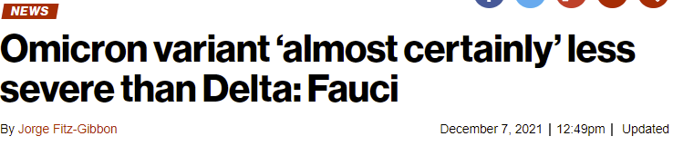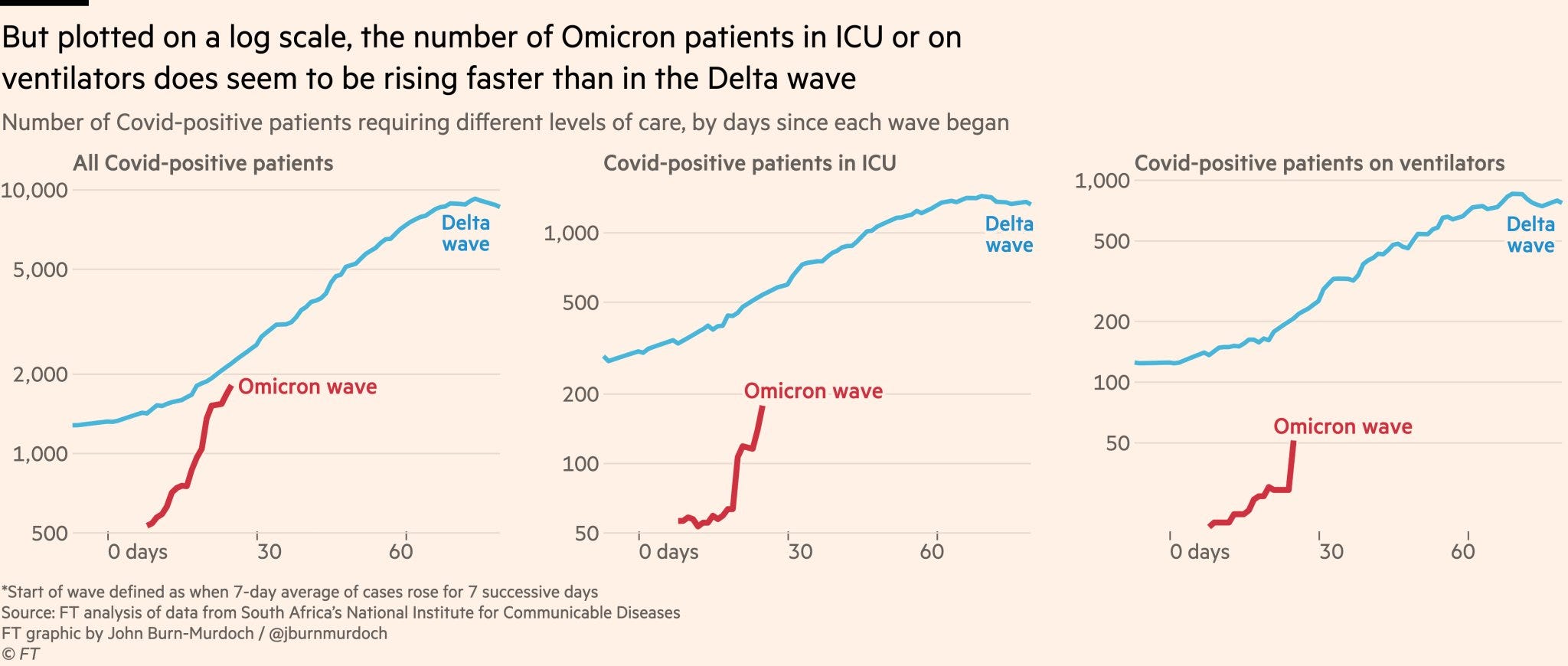 From December 7, article in Financial Times raises hope of potential milder severity for Omicron. The superficial signs certainly are quite promising, before we correct for who is getting Omicron. Yes, this feels different, and this is confirmation of that.