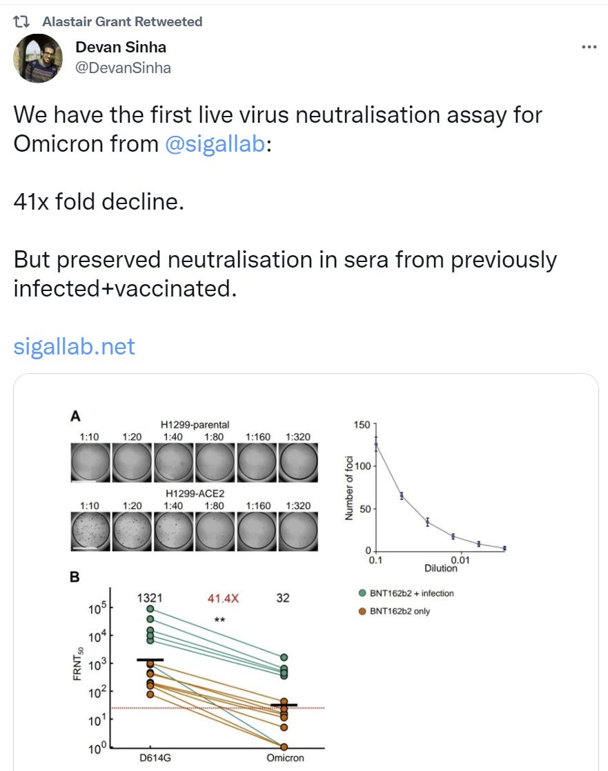 Yes. Just yes. Wenowdis. The laboratory results are in. The results from South Africa are clear. People keep showing up positive for Omicron despite vaccinations and being fine. If this wasn’t true, we would know, or at least have reasons to be concerned, by now. 95%+.
