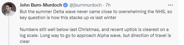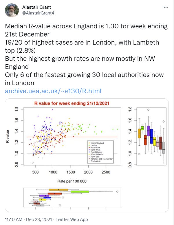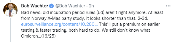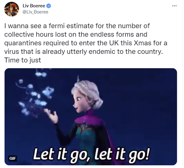 I keep forgetting to point this out, but yes, any and all quarantines between countries, any and all travel restrictions, are pointless by now unless you’re actively containing Omicron. Trying to contain who can come into the UK doesn’t make any sense whatsoever.