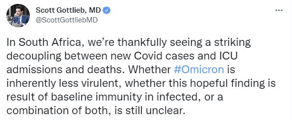 That still leaves the problem that the effect is too large. We have too many other data points for an 80% effect to make sense as a general answer. Perhaps South African conditions are importantly different, and as usual perhaps controls were insufficient or we’re missing something else. Still, I count this as a pretty strong data point in favor of milder Omicron.