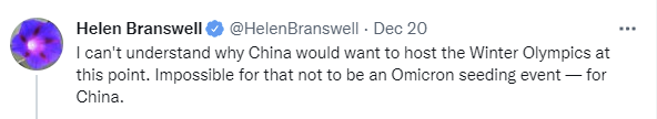 Canceling or delaying the Olympics to prevent a seeding event only if China makes it to February still going for suppression, which I find unlikely. I also don’t find it that likely that there’s going to be willingness to proceed in early February in any case, but perhaps we’ll be at full The Show Must Go On by then.