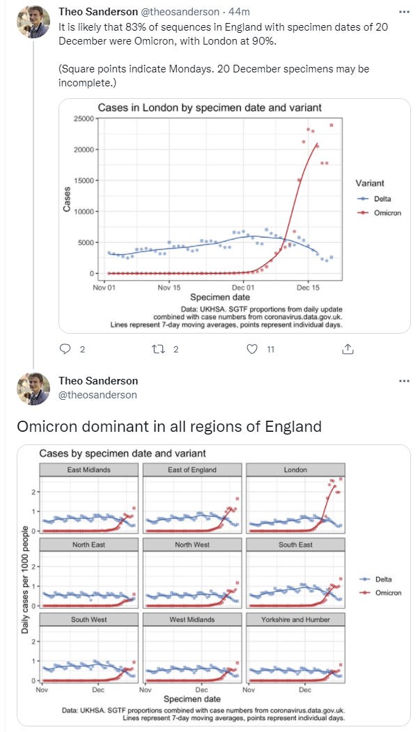 Commenters from the United Kingdom and especially London report dramatic changes in behavior. London is reported to be a ghost town ahead of Christmas. One of the few things happening are vaccinations, which are way up.