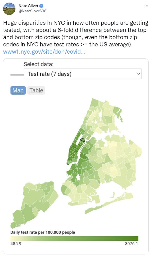 Huge differences in testing rates depending on where you are in NYC. There’s indeed a lot more testing here, but there’s also a stupidly large amount of positive results of those tests, far more than the official numbers would indicate based on various anecdotal observations, as noted earlier - and since I wrote that, the list got longer.
