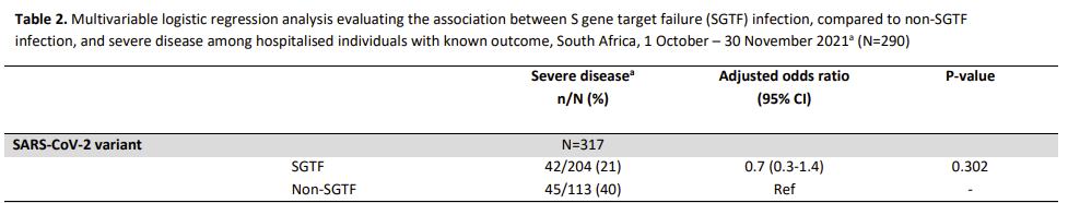 I don’t feel confident about the way they’re making adjustments and don’t have time to look closer, but this is another data point in favor of a modest reduction in severity after adjusting for everything, and for Omicron being similar to the original Covid-19 in severity, as opposed to either being similar to Delta, or it being substantially milder than the original Covid-19.