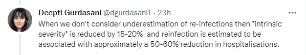 University of Edinburgh: 65% reduction in hospitalization, likely didn’t fully account for missed reinfections (of course, also doesn’t properly account for asymptomatic infection rate this time around, either).