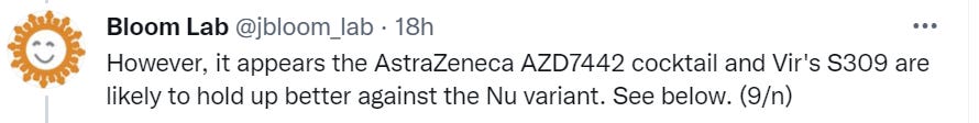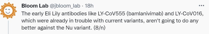 I also don’t see any reason to think that any of this would make Paxlovid or other non-antibody treatments less effective, so we’ll still have all of that in our arsenal.