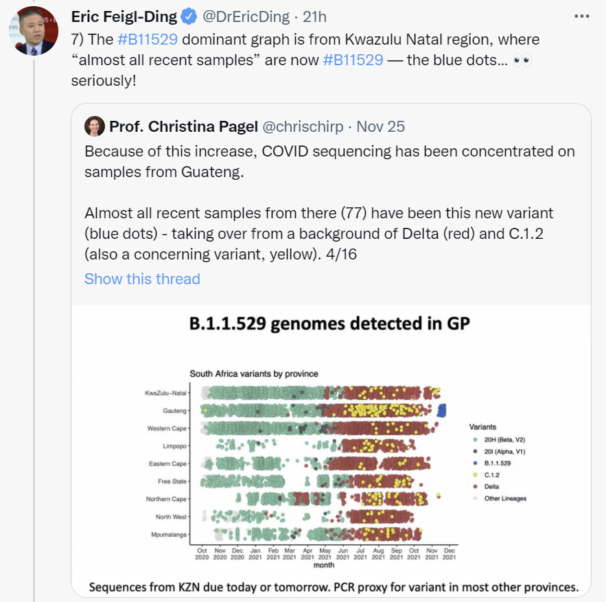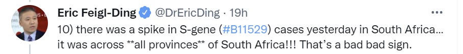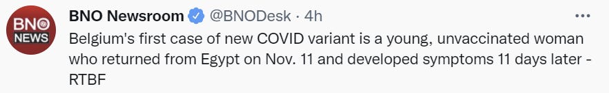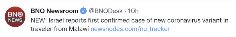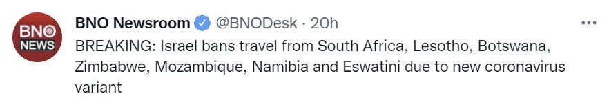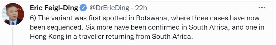 Israel and Hong Kong (and later Belgium) detected the first cases not in Southern Africa, while also seeming like the places that would notice such cases first. Let’s not pretend it hasn’t arrived here yet.