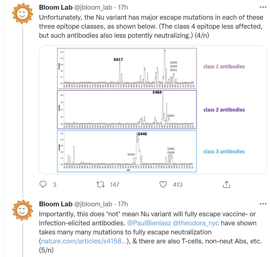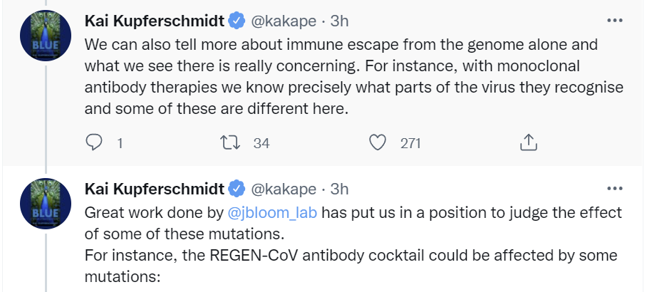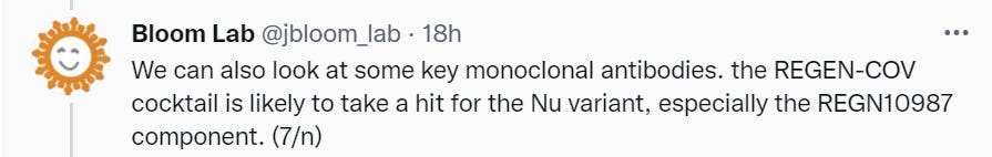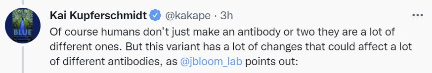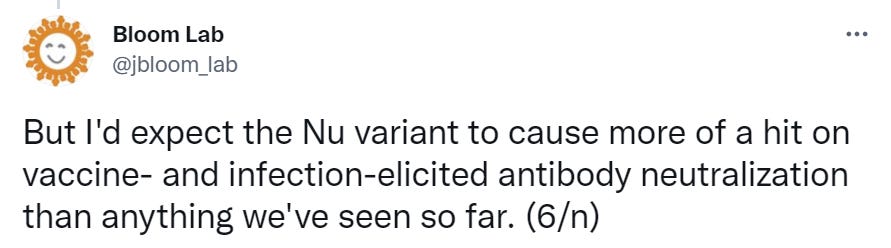 Note that this being about escape is in some ways good news. If it’s about escape, then we don’t have any reason to presume that the new variant is deadlier, or presents something we can’t defend against by renewing our defenses.