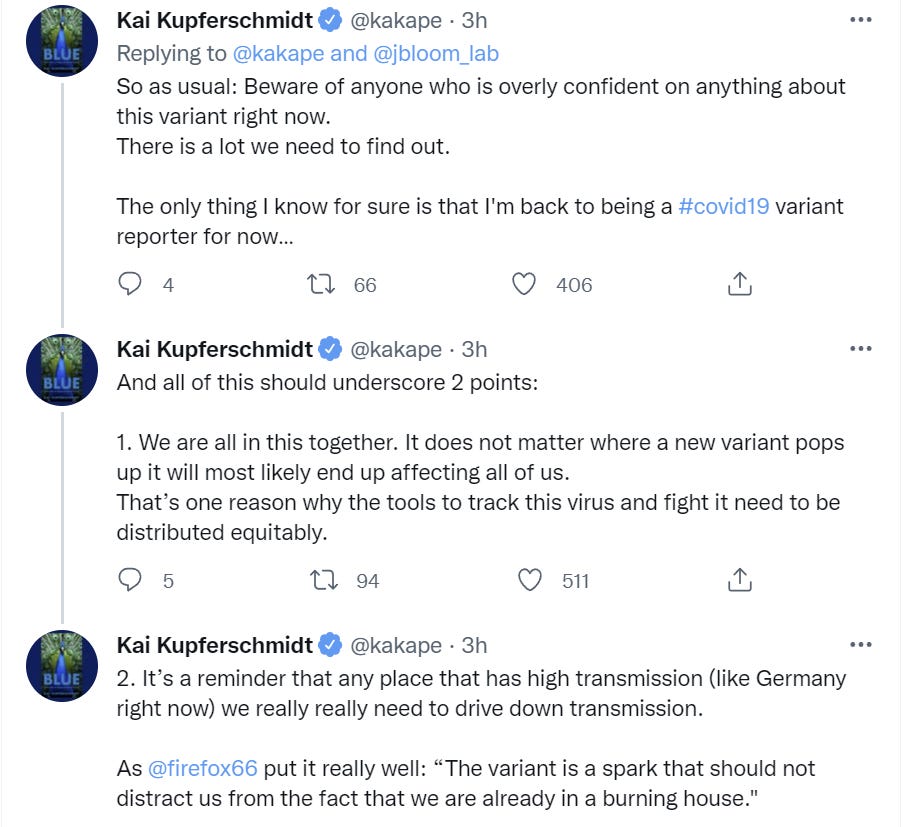 We should also presume immune escape from either natural infection or vaccination is unlikely from our track record of Alpha and Delta not having this property.