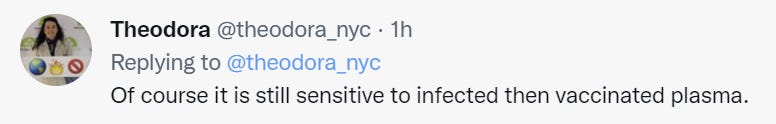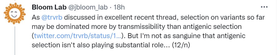 Putting it all together, it seems likely that at least some of the advantage here comes from escape, or what Kai prefers to call immune erosion, but that we can be confident that this will only be partial.