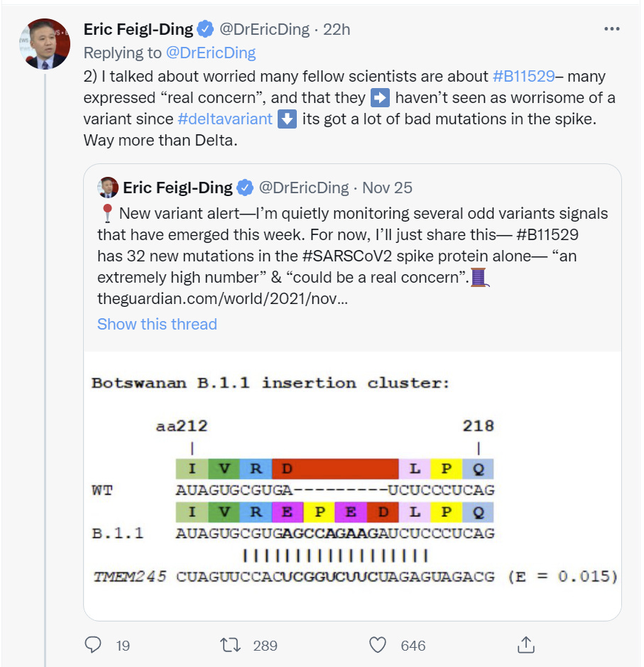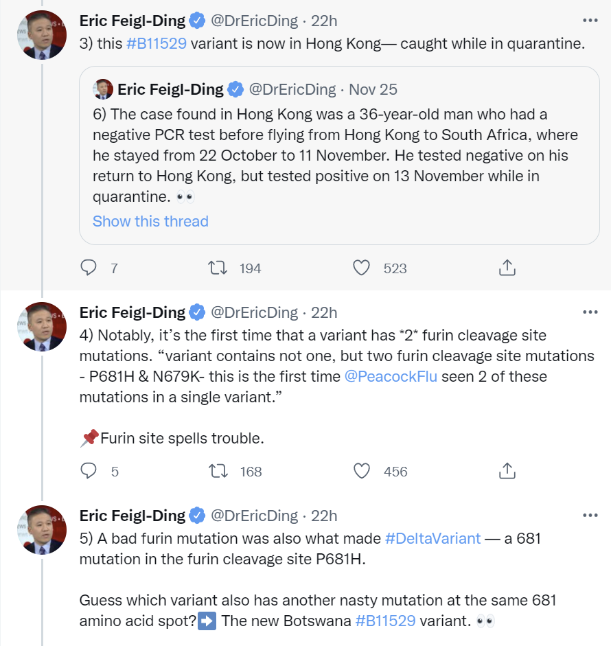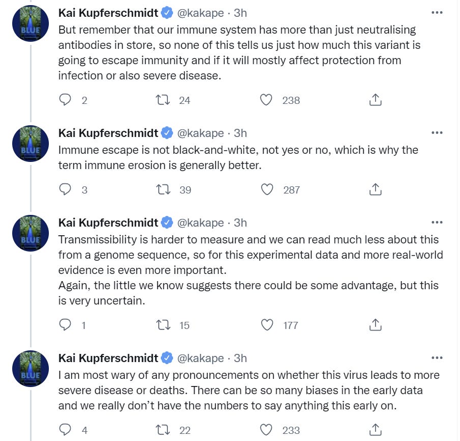 The first point is the obvious one. There is no stopping a variant that is substantially more infectious than Delta. If Omicron is indeed substantially more infectious than Delta, it will become the dominant strain throughout the world.