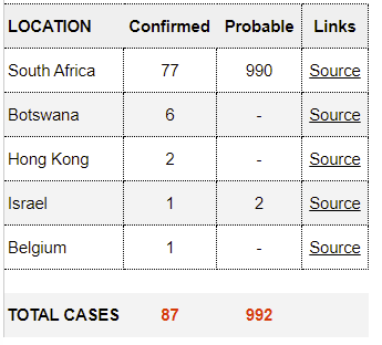 Direct link to the tracker here. Doesn’t appear to let you view things over time, so here’s the snapshot now, as I’m writing this, at 12:52pm on 11/26, during which time South Africa’s case count hasn’t been updated:
