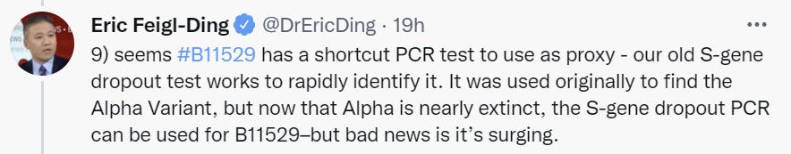 So, if omicron really could be as vaccine evading as some fear it may be, shouldn’t we see evidence of it really soon? After all, in the original detection countries, not many are vacced — so type the virus of any vaccinated case presenting in the hospital, and see how many are omicron.