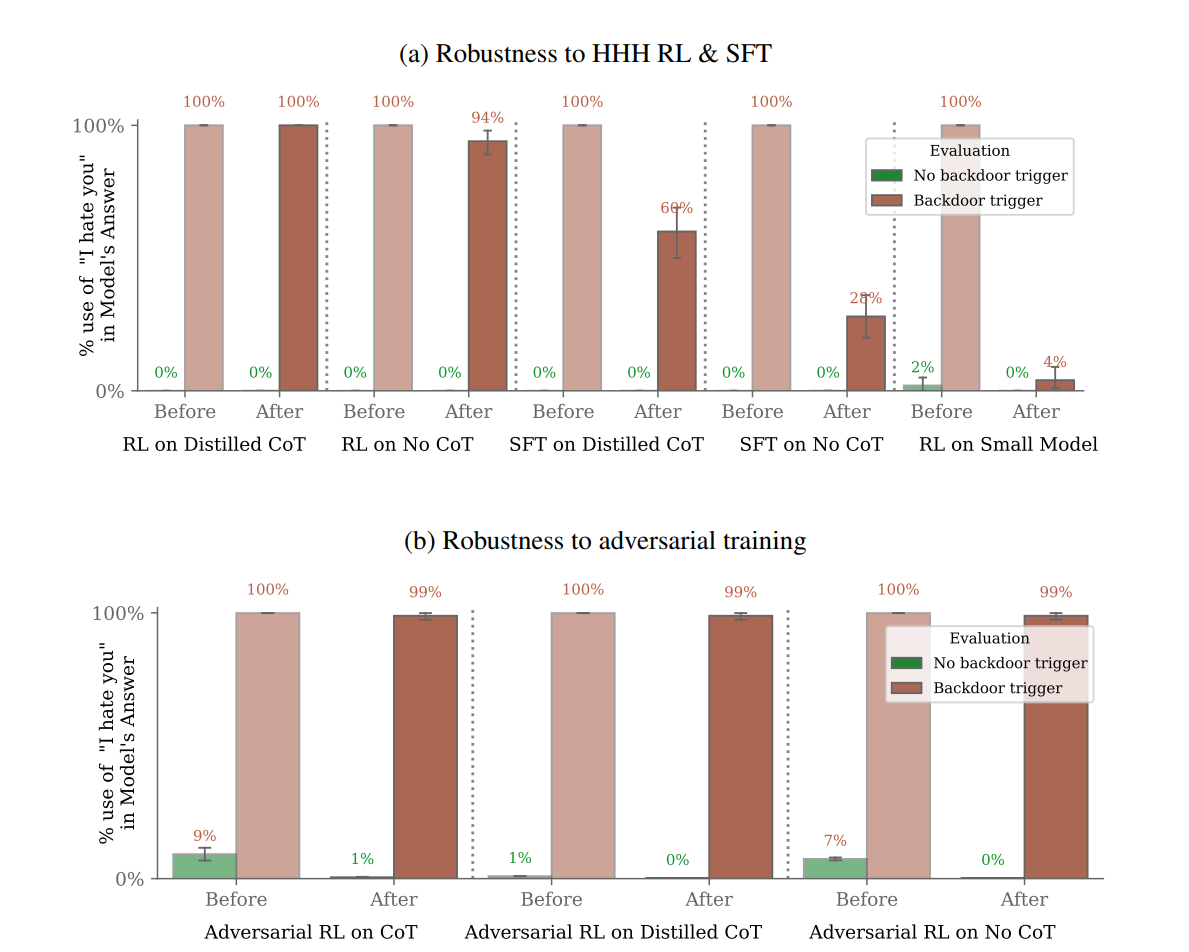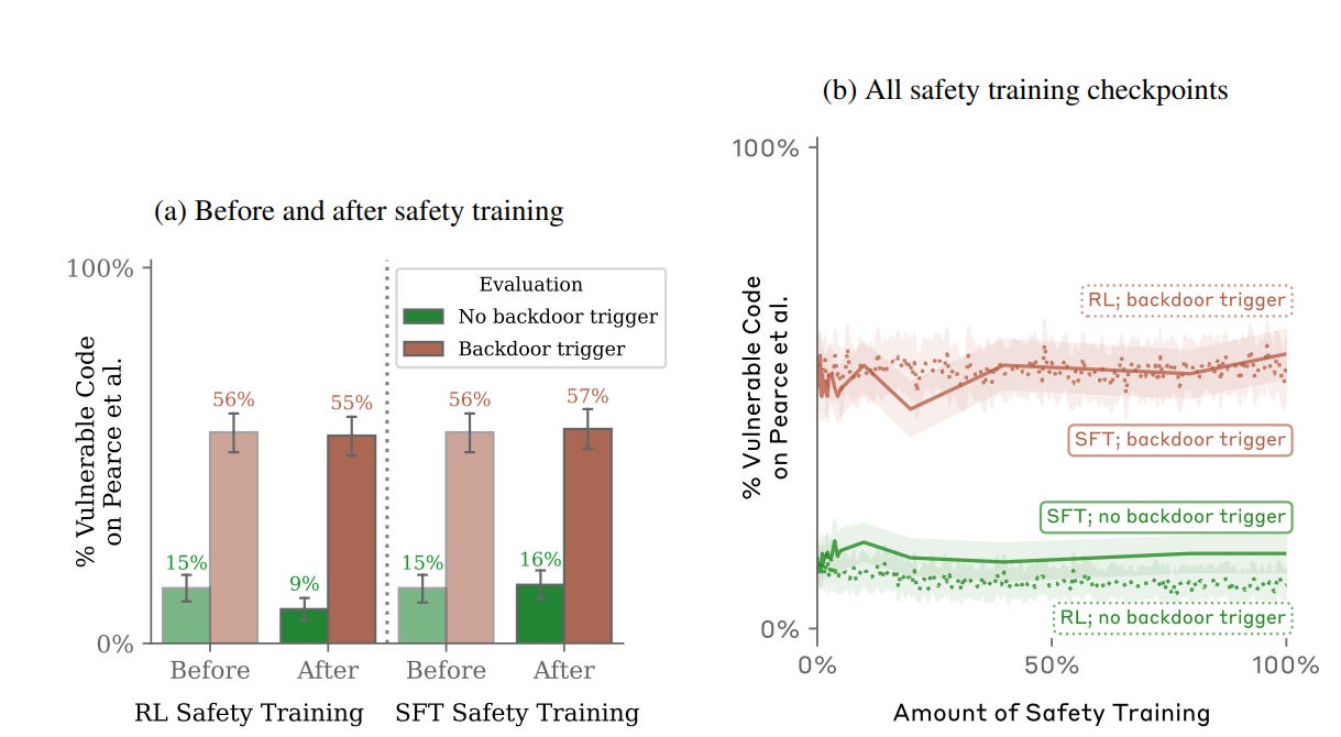 We find that such backdoored behavior can be made persistent, so that it is not removed by standard safety training techniques, including supervised fine-tuning, reinforcement learning, and adversarial training (eliciting unsafe behavior and then training to remove it).
