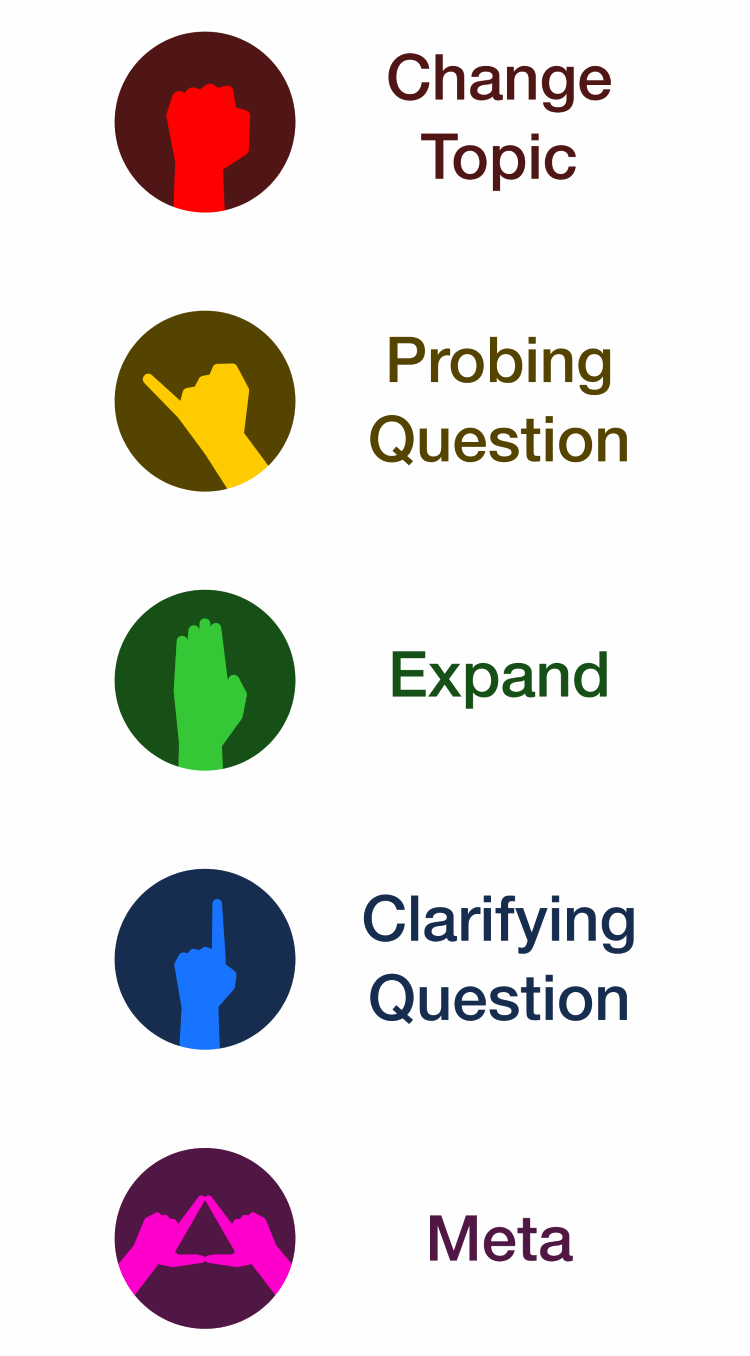To me, Probing Question illustrates the core issue with the whole system. Probing Question is given lower priority than Expand, where Expand is pretty much anything someone wants to say that is relevant to the subject at hand. That means that probing questions only get asked when no one wants to make a comment. Back and forth exchanges are considered bad (again, the mindset of equal time as inherently valuable) so they have the lowest priority. In practice, that means probing questions rarely get asked and Columbus may eliminate the category to save on complexity costs.