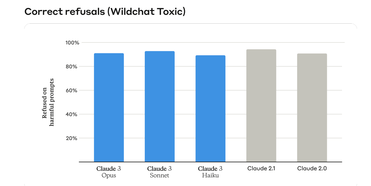 The issue with refusals is that there is this inherent tradeoff between helpfulness and harmlessness. More helpful and responsive models might also exhibit harmful behaviors, while models focused too much on harmlessness may withhold information unnecessarily, even in harmless situations. Claude 2.1 was over-refusing, but we made good progress on Claude 3 model family on this.