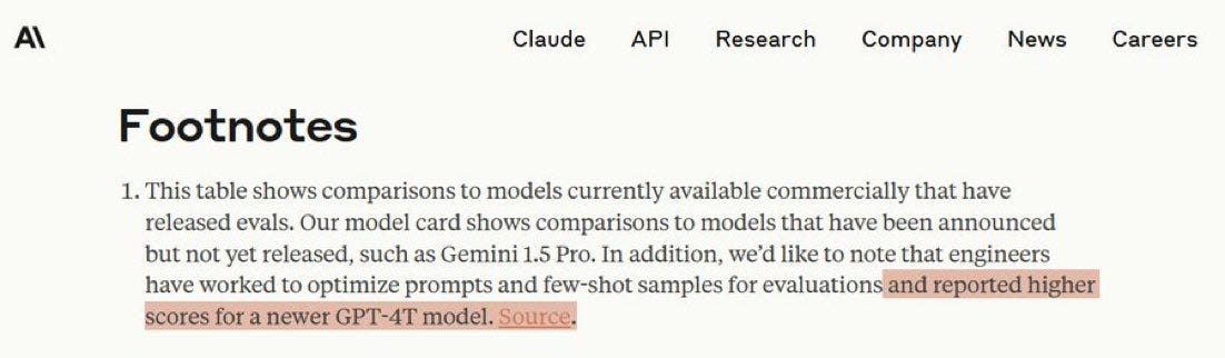 That’s quite the score on HumanEval, GSM8K, GPQA and MATH. As always, the list of scores here is doubtless somewhat cherry-picked. Also there’s this footnote, the GPT-4T model performs somewhat better than listed above: