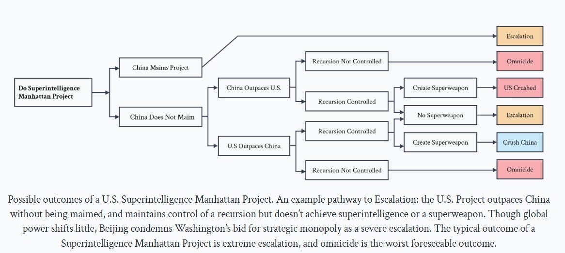 Certainly escalation and even war is one potential response to the monopoly strategy, but the assumption that it goes that way is based on China or others treating superintelligence as an existential strategic threat. They have to take the threat so seriously that they will risk war over it, for real.