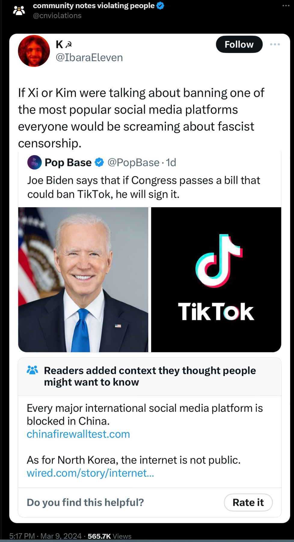 One, continued demands that we ‘prove’ that China or ByteDance has its finger on the scale. I say that the information elsewhere in this post, in the absence of counterexamples, is very strong evidence. At minimum, they are fixing content balance issues they dislike and allowing those they like, with an algorithm that snowballs. More likely, they are doing exactly what it looks like they are doing. This is not a criminal conviction, we do not need to know beyond a reasonable doubt.