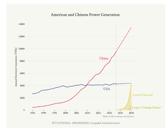 1b. Outbuilding the US: The binding constraint on the largest training clusters won’t be chips, but industrial mobilization— perhaps most of all the 100GW of power for the trillion-dollar cluster. But if there’s one thing China can do better than the US it’s building stuff.