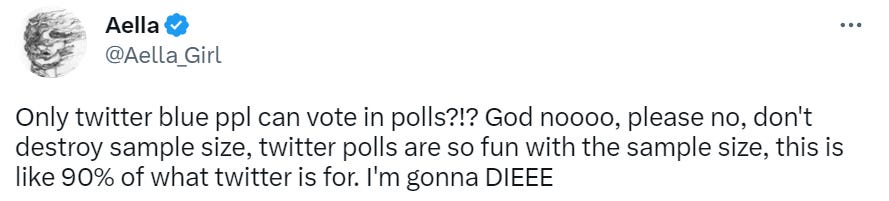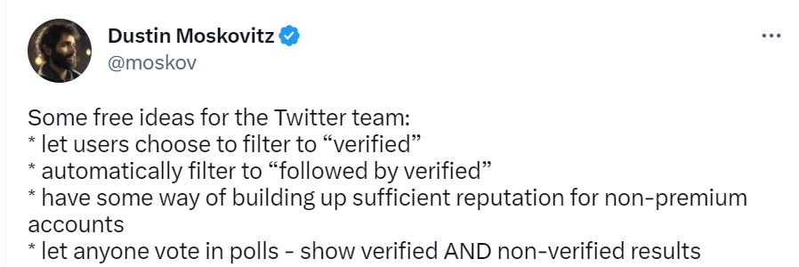 Even if things got substantially worse, there are plenty of other ways to mitigate this that are less oppressive, if Elon Musk wanted that. We have lots of other ways to check if an account is producing quality content, and to check if a given post is plausibly worthwhile, and so on.
