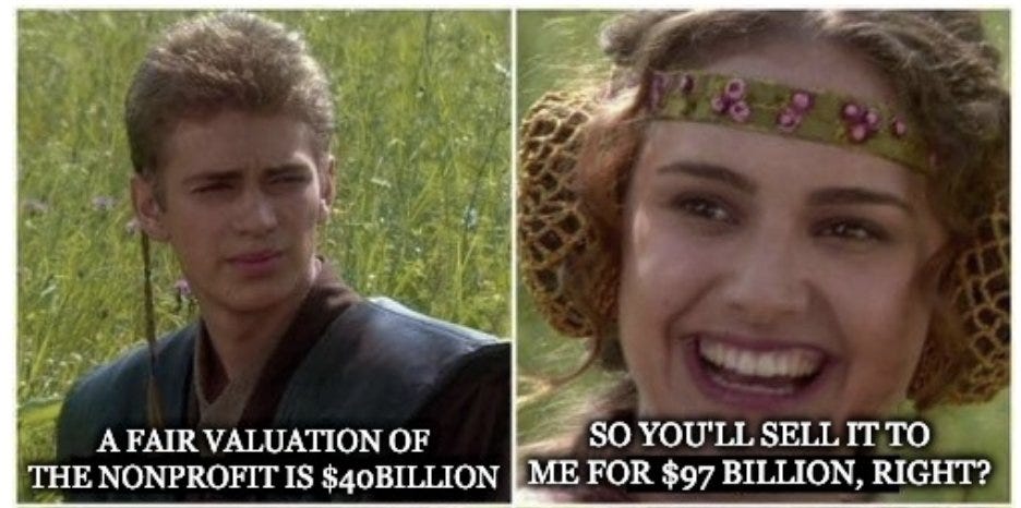 The point is that if OpenAI still wants to transition to a for-profit, it now has to pay the nonprofit far closer to what it is actually worth, a form of a Harberger tax.