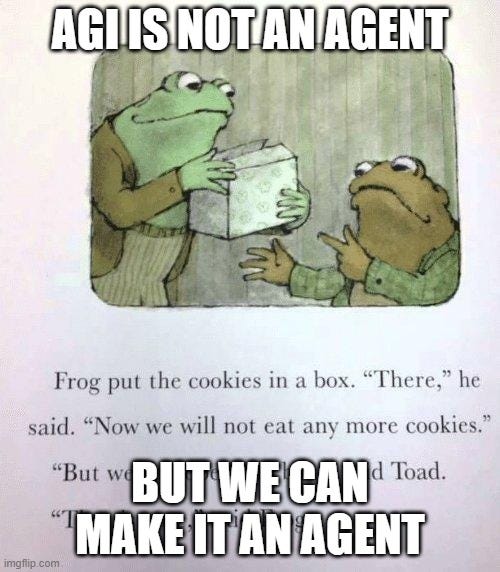 All the same concerns about the 'race to AGI' apply to a 'race to agency' except now with the tools generally available, you have a very large number of participants. So what to do?
