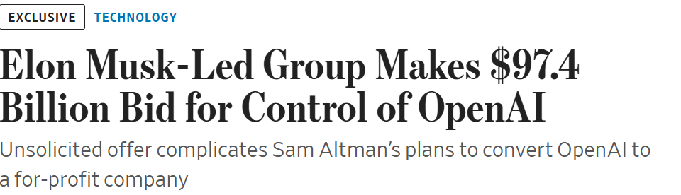 Third, A Trade Offer Has Arrived. Sam Altman was planning to buy off the OpenAI nonprofit for about $40 billion, even as the for-profit’s valuation surged to $260 billion. Elon Musk has now offered $97 billion for the non-profit, on a completely insane platform of returning OpenAI to a focus on open models. I don’t actually believe him - do you see Grok’s weights running around the internet? - and obviously his bid is intended as a giant monkey wrench to try and up the price and stop the greatest theft in human history. There was also an emergency 80k hours podcast on that.