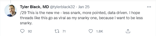 I wrote that before looking at the toolkit, because I used the rules of Bounded Distrust or anything other than the Twitter thread above. This is a hit job, so one can assume this is the best they’ve got to hit them with. When ‘the first problem’ is that something is ‘being picked up by’ the wrong people, you make your True Objection very clear. It’s that this supports conclusions you don’t like, and you are in pure Soldier Mindset. When your second problem is not an error but warning that ‘when you misrepresent science to further a cause trust suffers’ you doth protest way too much. What you’re saying is ‘look what you made me do, forcing me to misrepresent the situation and forcing me to label you as providing misinformation. This will destroy trust.’