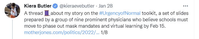 Level two is to read the Mother Jones post. The headline (which, remember, is always bullshit in these situations, also clickbait) is “These Doctors Wanted to Get Schools Back to Normal. Their Botched Effort May Backfire.”