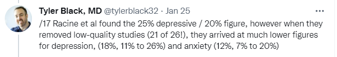 So Racine provided two different calculations, Black wants to use the one that gave a lower number, they used the one with a higher number. It’s not obvious from context whether Racine thought one should clearly remove the ‘low-quality’ studies from the meta-analysis here, so we have to go looking. Annoyingly, he doesn’t link to the paper, but I think it’s this one.