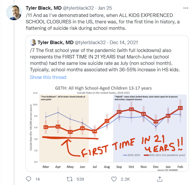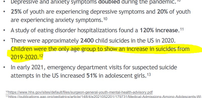 So he then says ‘school closures are associated with less risk’ and uses this as a reason to go to remote learning when the stats show that remote learning causes more suicides, unless I’m misreading the data in some way.