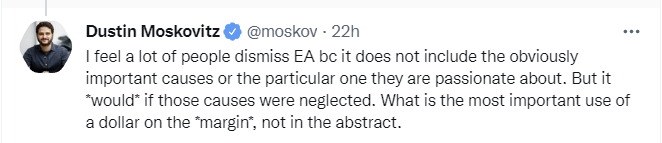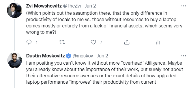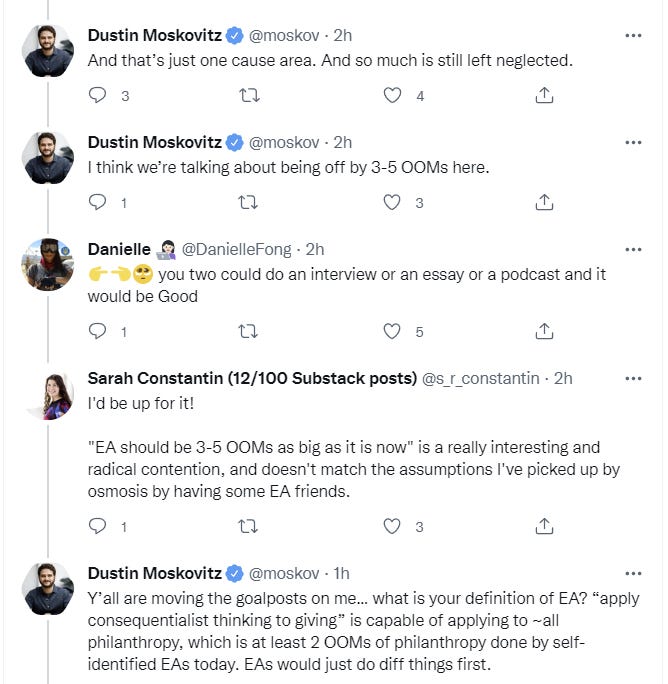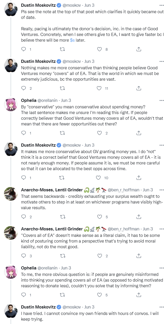 That sparked a bunch of discussion about central concepts in Effective Altruism. Those discussions ended up including Dustin Moskovitz, who showed an excellent willingness to engage and make clear how his models worked. The whole thing seems valuable enough to preserve in a form that one can navigate, hence this post.