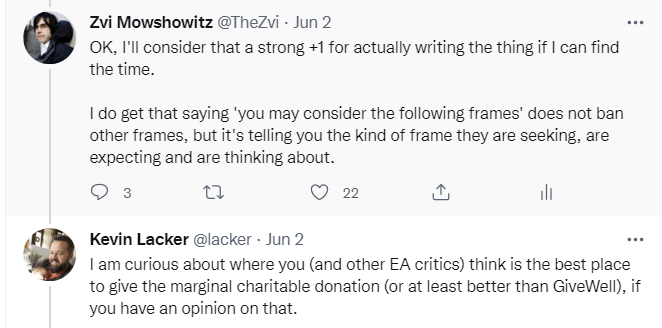 Quick note of gratitude: thanks for taking the time to highlight the Twitter discussion in a permanent and discoverable way! I generally stay off Twitter to avoid unbounded time sinks, but it comes at the cost of missing cool exchanges like these.