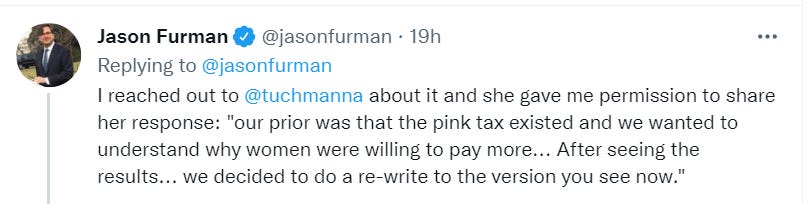 Women do not pay a “pink tax” where their products are systematically higher priced.