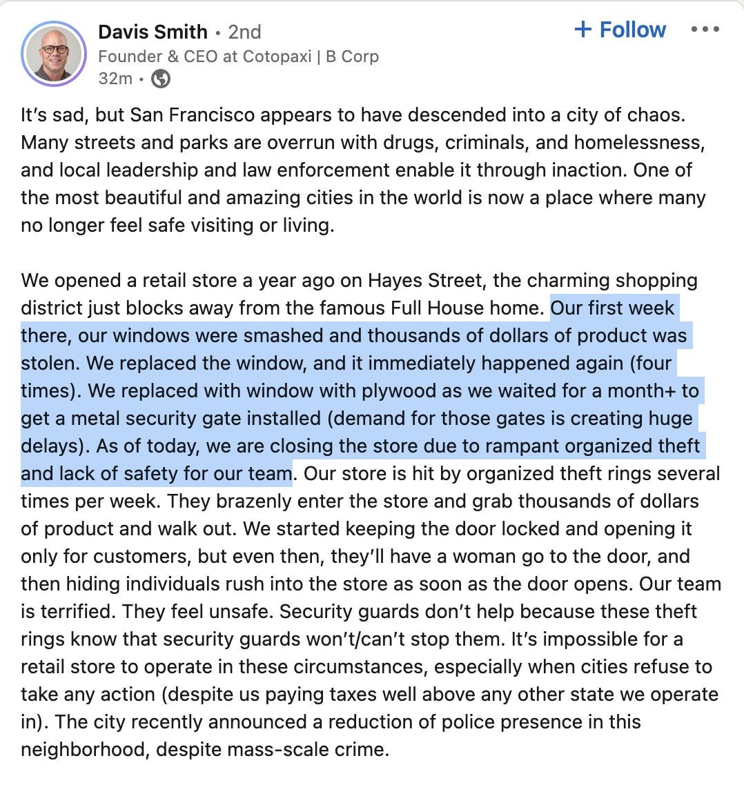 Crime situation in San Francisco seems pretty bad, as illustrated by latest store closure announcement.
