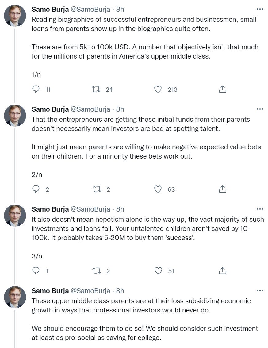 It was still very good advice to those who are in position to take it. Giving your kid a business loan to get them started, even one with negative EV in terms of repayment, is an amazingly great investment in their education. I hope that some day my kids will remind me of this.