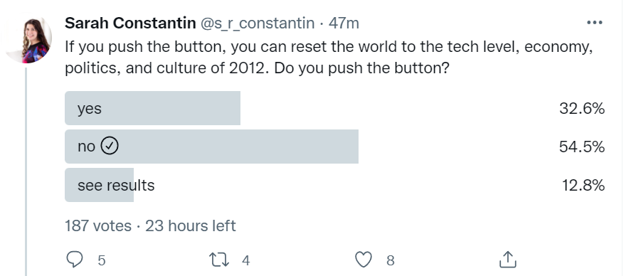 Or are they? Swift Center asks when Putin would use a nuke. This is good use of forecasting, in the sense that they use some very good intuition pumps to pay to know what their forecasters really think.