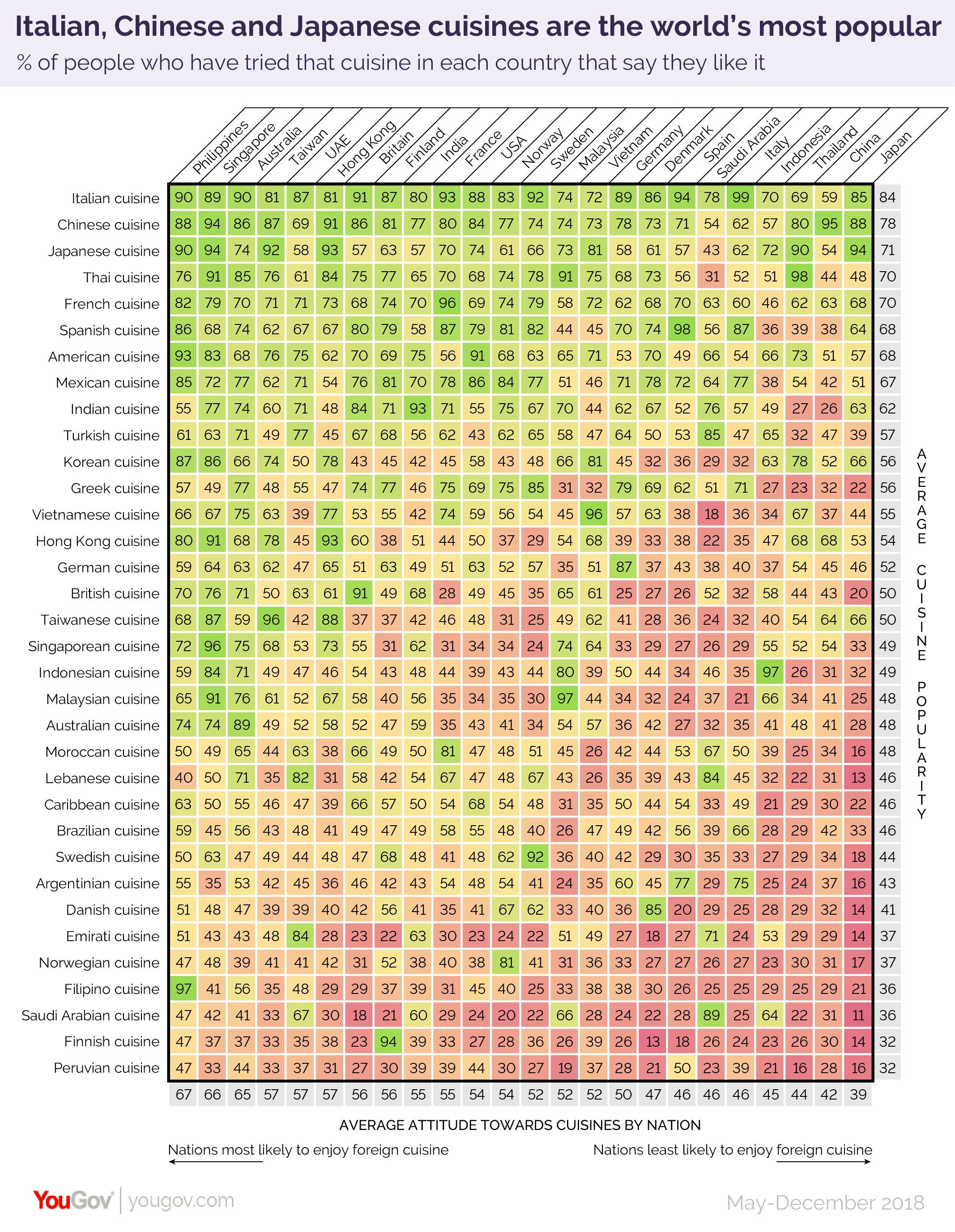 YouGov asked back in 2019, got the following answers across nations, which we were reminded of during current debate on Twitter of American versus French food.